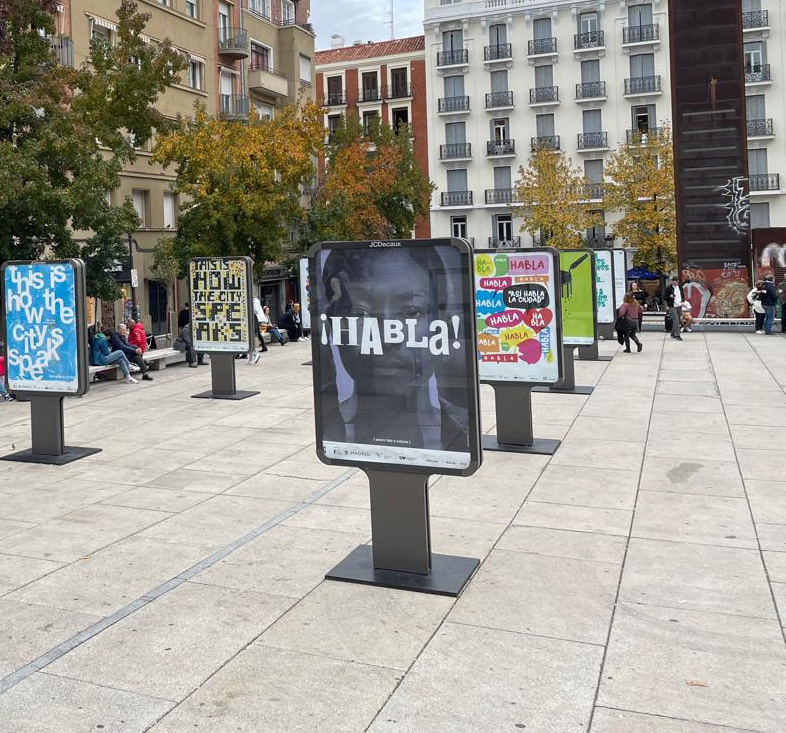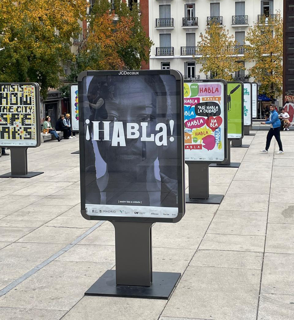 The poster “¡Habla!” is part of the exhibition “Así Habla la Ciudad / Assim Fala a Cidade” (Thus Speaks the City), the central thematic event of the 7th edition of Madrid Gráfica Abierta, organized annually by the Asociación Iberoamérica Diseña, which brings together graphic artists from various countries.
