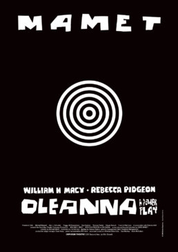 David Mamet foi um dos primeiros autores a abordar no teatro a polêmica questão do assédio sexual, em montagem lançada no Orpheum Theatre, em Nova York. A ambiguidade do tema e a tênue linha que separa o papel de vítima e algoz sugeriam a imagem de um alvo formado pela alternância de um rosto masculino e um feminino, como vemos nas colagens iniciais. A extrema simplicidade gráfica do resultado final garantiu, no entanto, seu destaque dentre os coloridos cartazes de teatro nova-iorquinos.